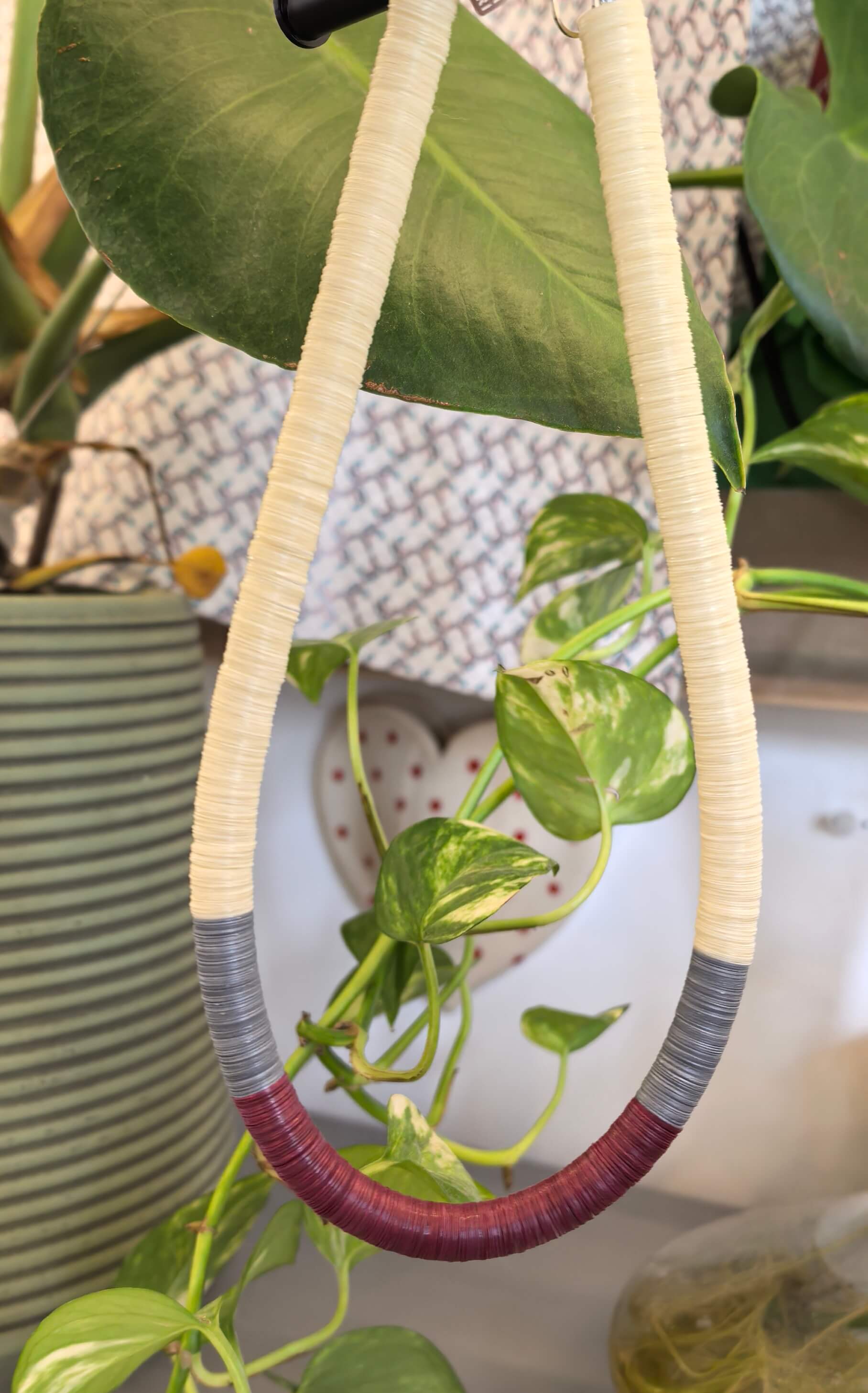 Nossa versão com off-white, cinza e bordô é um colar para te acompanhar o ano inteiro e em muitas ocasiões.