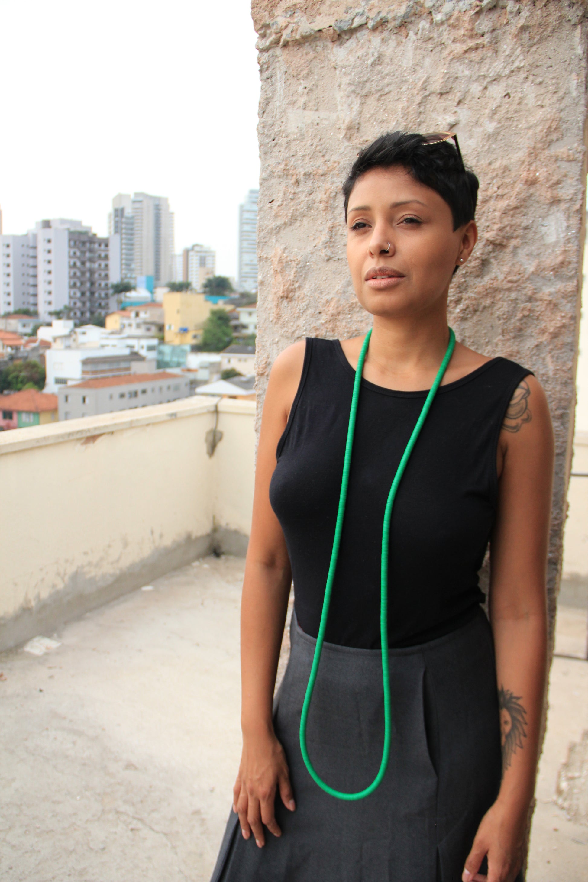 Versatility and bold style in one necklace! The 1.5m Flag Green Necklace is a unique piece full of possibilities. With a single long strand of 1.5 meters, you can wear it in multiple ways—draped loosely for a touch of elegance, or wrapped several times for a bold, structured look.