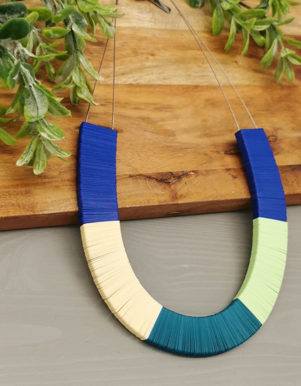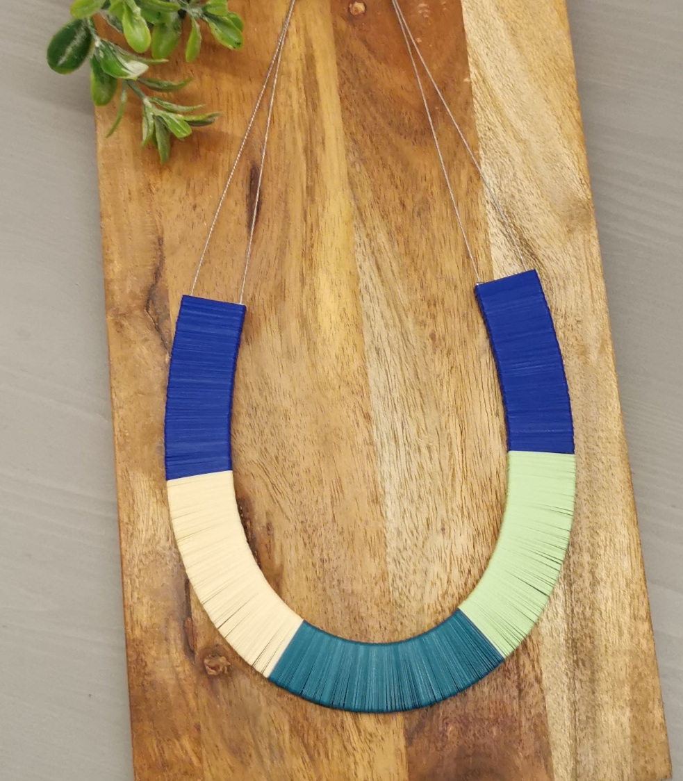 This necklace feels like a breath of fresh air on a summer day — blending royal blue, soft green, turquoise, and vanilla into a vibrant, refreshing palette. Inspired by bright skies, coastal escapes, and blooming gardens, it's the perfect accessory to brighten up your look.