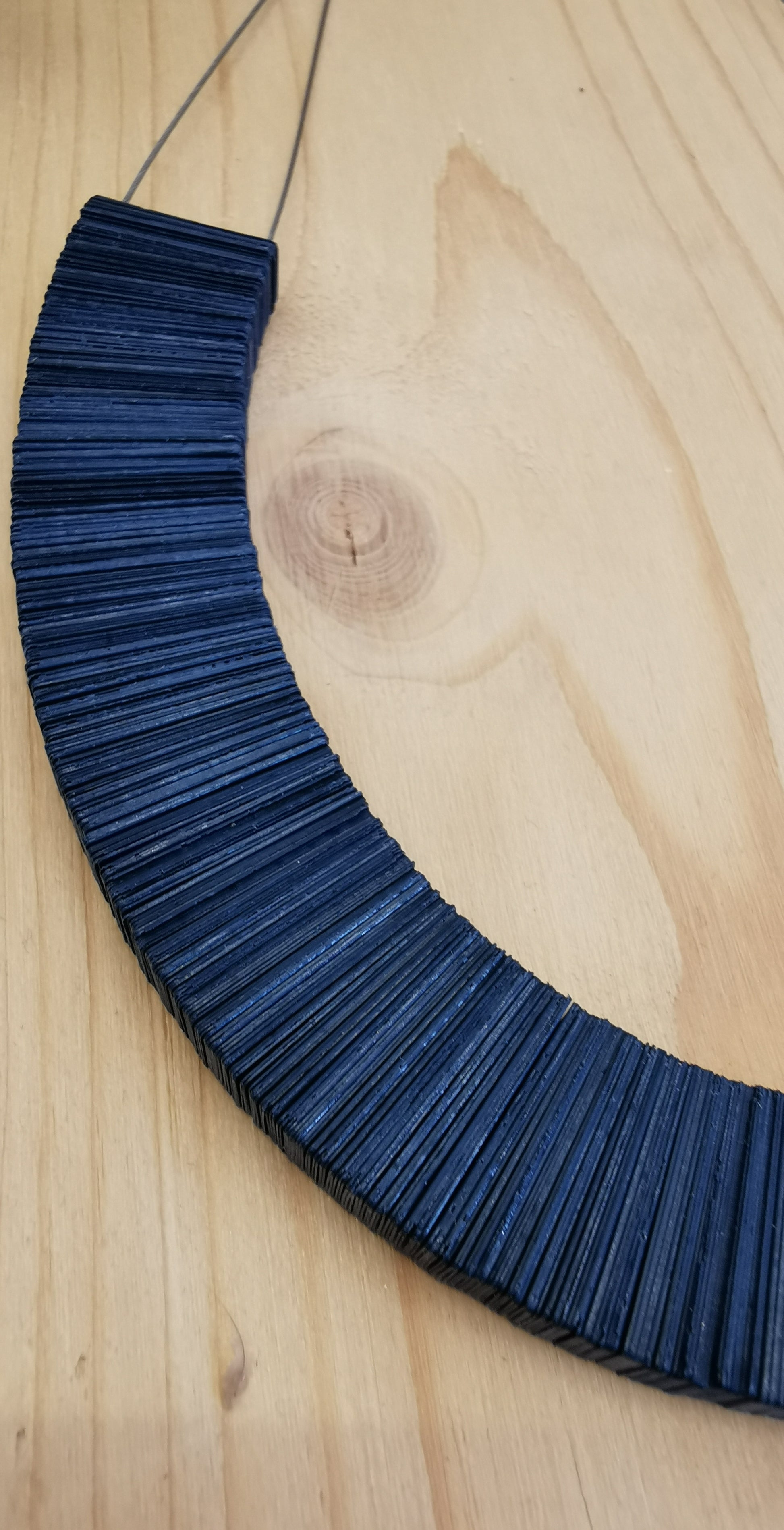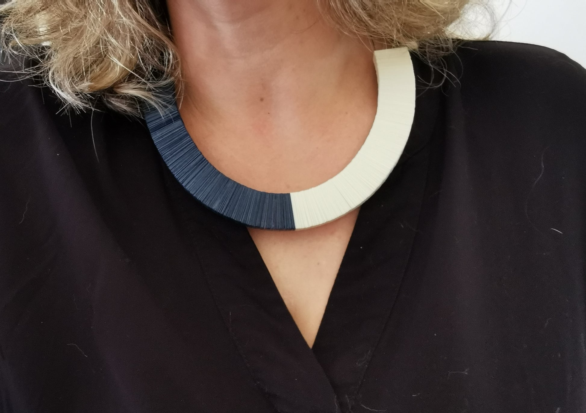 Feito à mão em Portugal com peças leves de PVC e fio de aço, este colar é a prova de que a simplicidade também pode ser marcante.