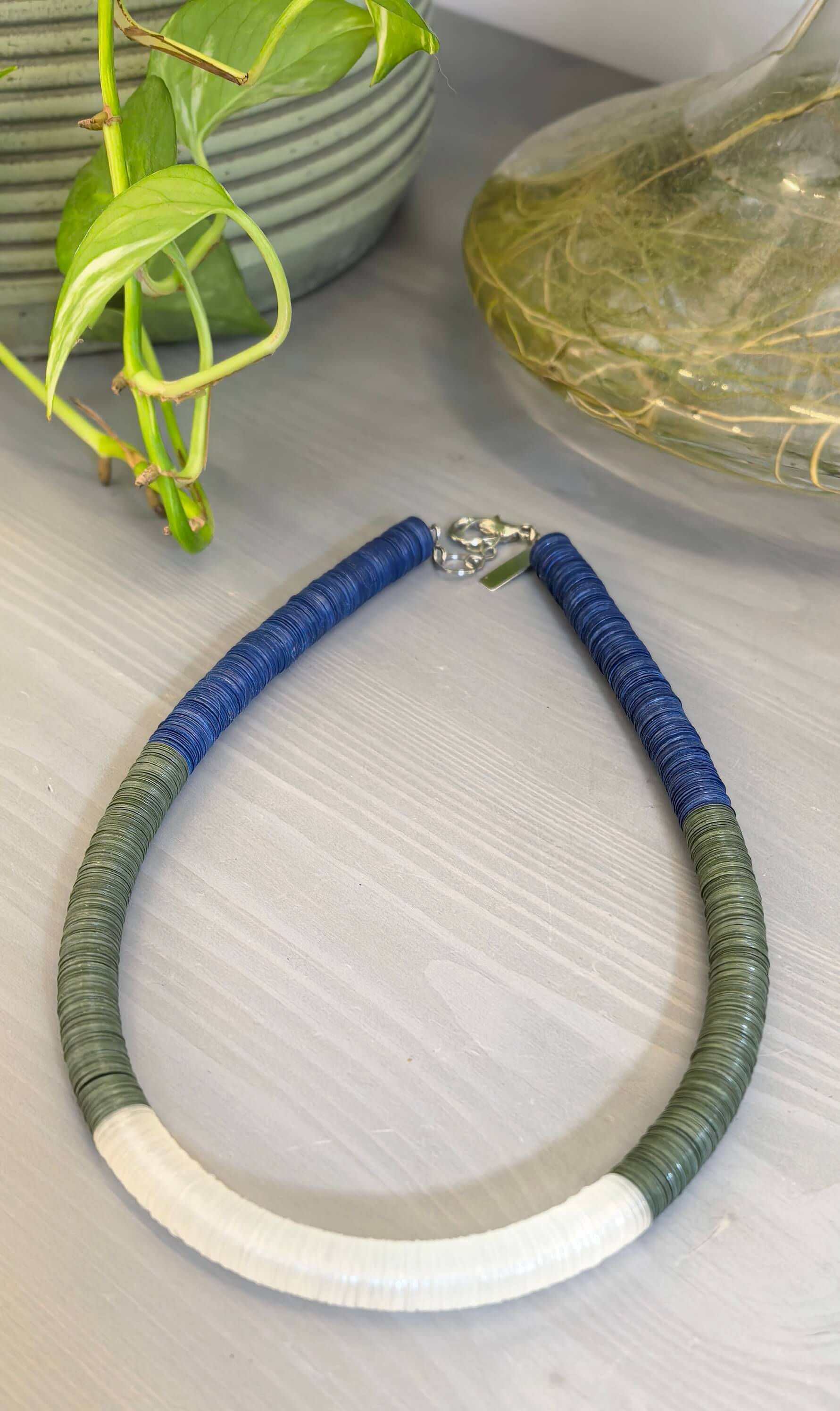 A versão perfeita para o outono-inverno, com combinação de cores azul marinho, verde musgo e incolor. Nossos colares adaptam-se tanto a looks casuais como a coordenados mais elegantes.