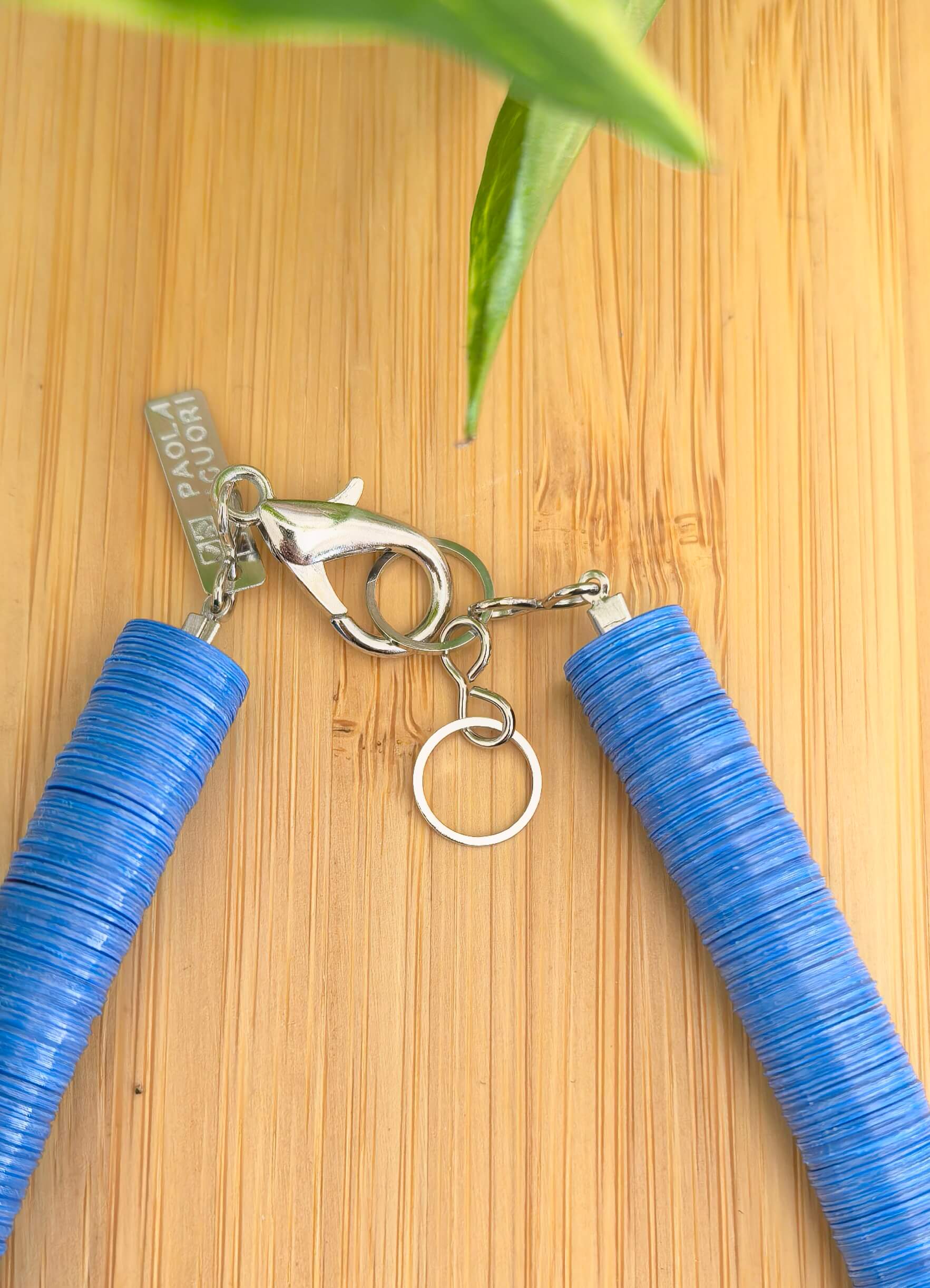 Com laterais em azul royal e detalhe central em azul turquesa, esta peça combina intensidade e leveza numa paleta moderna e cheia de estilo. Ideal para quem gosta de cores marcantes mas elegantes, é um acessório que ilumina qualquer coordenado — do casual ao mais requintado.